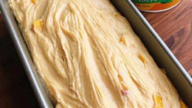 Peaches & Cream Cheese Loaf Peaches & Cream Cheese Loaf is a soft, moist quick bread filled with sweet peaches…