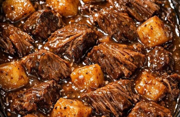 🥩🥔 4-Ingredient Slow Cooker Beef Tips and Potatoes