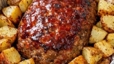 Classic Homestyle Meatloaf with Roasted Potatoes ✨ Classic Homestyle Meatloaf with Roasted Potatoes ✨ Tender • Juicy • Sweet-Savory Glaze…