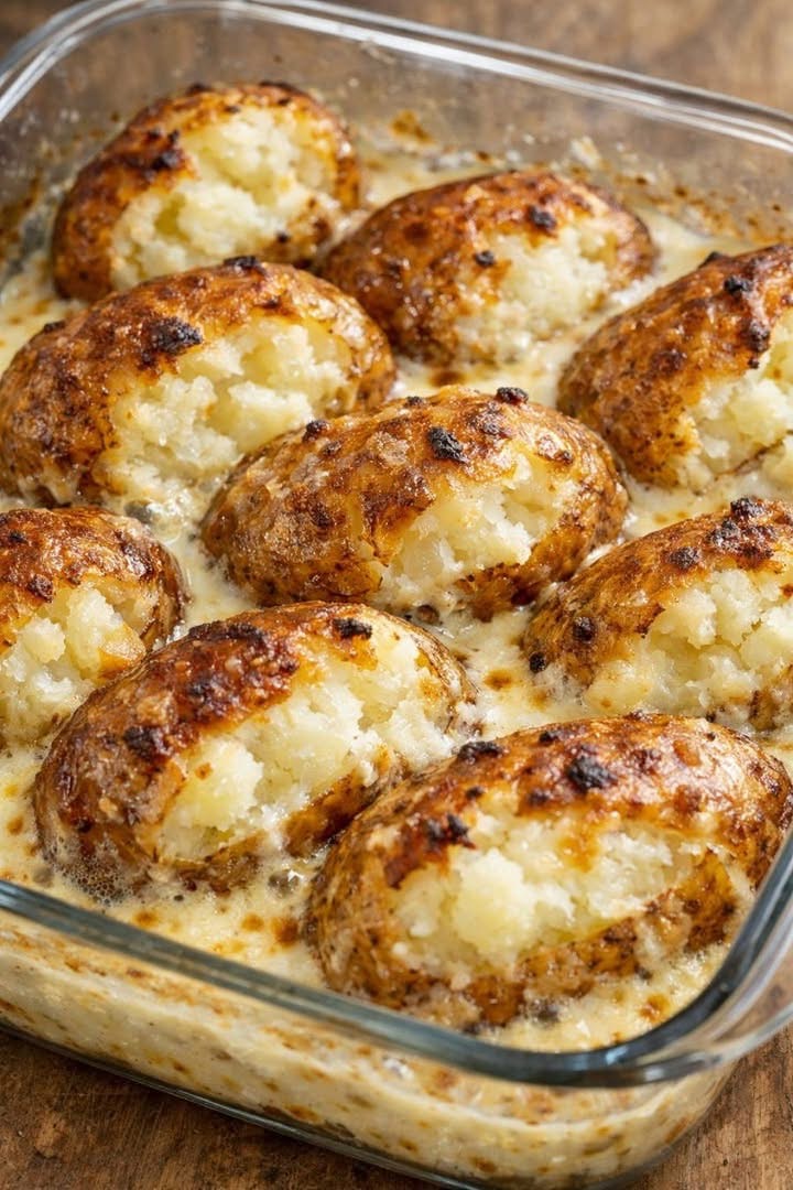 Creamy Baked Stuffed Potatoes are the ultimate comfort side dish—crispy on the outside, soft and fluffy on the inside, all baked in a rich, creamy sauce. With just a few simple ingredients, this classic recipe delivers big flavor with minimal effort.