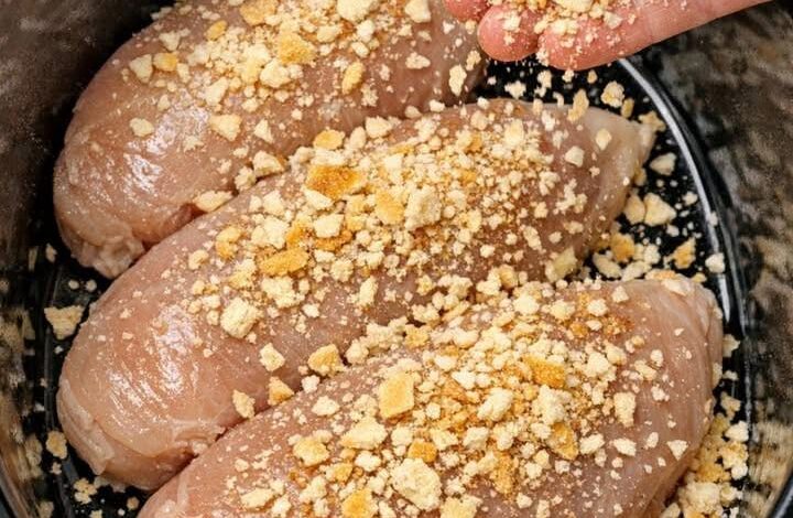 As the chicken cooks slowly, the crackers soften slightly and blend with the creamy sauce, creating a rich and flavorful topping that makes every bite warm and satisfying.