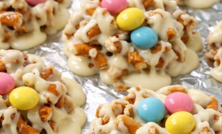 Slow Cooker Easter Candy Clusters are a fun and easy no-bake treat perfect for spring celebrations and Easter gatherings. Sweet melted chocolate coats crunchy pretzels and nuts, creating delicious bite-sized clusters topped with colorful candy eggs.