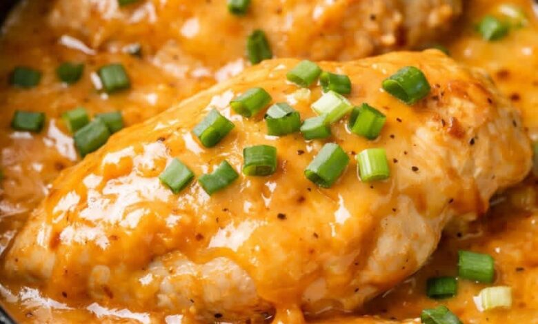 Tender chicken slowly cooks in a savory cheddar sauce until it becomes juicy, flavorful, and coated in a smooth cheesy glaze.